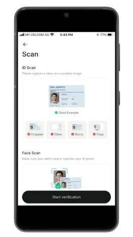 Ensure your ID is valid and matches your profile, use a well-lit photo, and try again. If it fails repeatedly, contact support.
